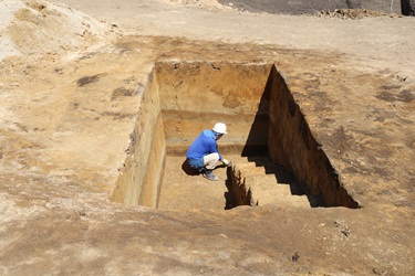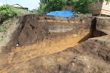 8月は小萩山Ⅰ・Ⅱ・Ⅲ遺跡3区の調査が終了し、旧石器確認調査を実施しました。3区では、縄文時代前期の竪穴建物2棟(写真1)が見つかりました。3区の東端は断層となっており、天明3(1783)年の浅間山噴火に伴う軽石(As-A)の層が確認できたため、それ以降に地すべりが起こったと考えられます(写真2)。旧石器確認調査では、遺構・遺物は確認されませんでした(写真3)。調査は8月末で終了しました。