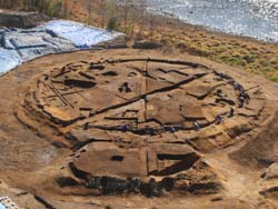1区では、古墳時代の竪穴建物や溝を調査しました。6号墳の墳丘下に円形に掘られていた140号溝は、直径約32m、幅約2m、深さ30~70㎝の規模からすると、古い円墳の可能性があります。4区では、平安時代から古墳時代の竪穴建物などの調査を継続的し、良好な状態で残るカマドもみつかっています。